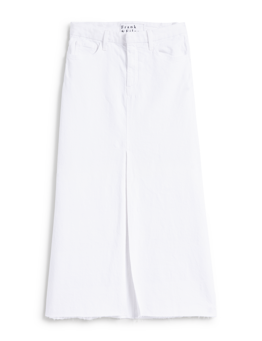 The most elongating denim maxi skirt ever! Designed for a high-rise with a slimming fit and maxi-length.