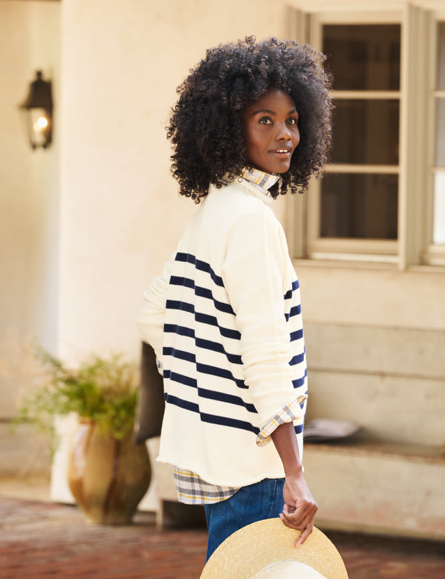Consider this your destination for finding your next favorite cotton sweater. Made from 100% Pure Italian Cotton, our luxurious silhouettes are resistant to pilling and retain their quality, color, and shape no matter how many times you wash and wear them. Shop the Monterey Rolled Funnel Neck Sweater and learn how to style funnel neck sweaters or our Montecito Classic Pullover Sweater.