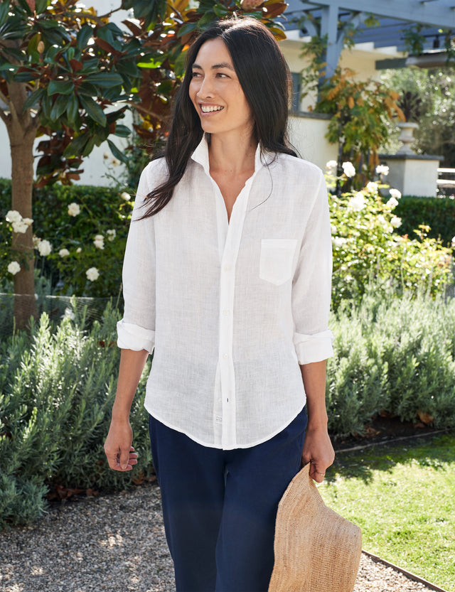 It’s true, a white button-up will never go out of style—they’re a timeless fashion staple! Once you choose the best silhouette for you, whether it’s our Eileen Relaxed Button-Up Shirt or more fitted Barry Tailored Button-Up Shirt, you’ll find there are endless ways to style them. Looking for more style inspiration? Check out our How To guide to see five of our favorite ways to wear a plain white button-up shirt.