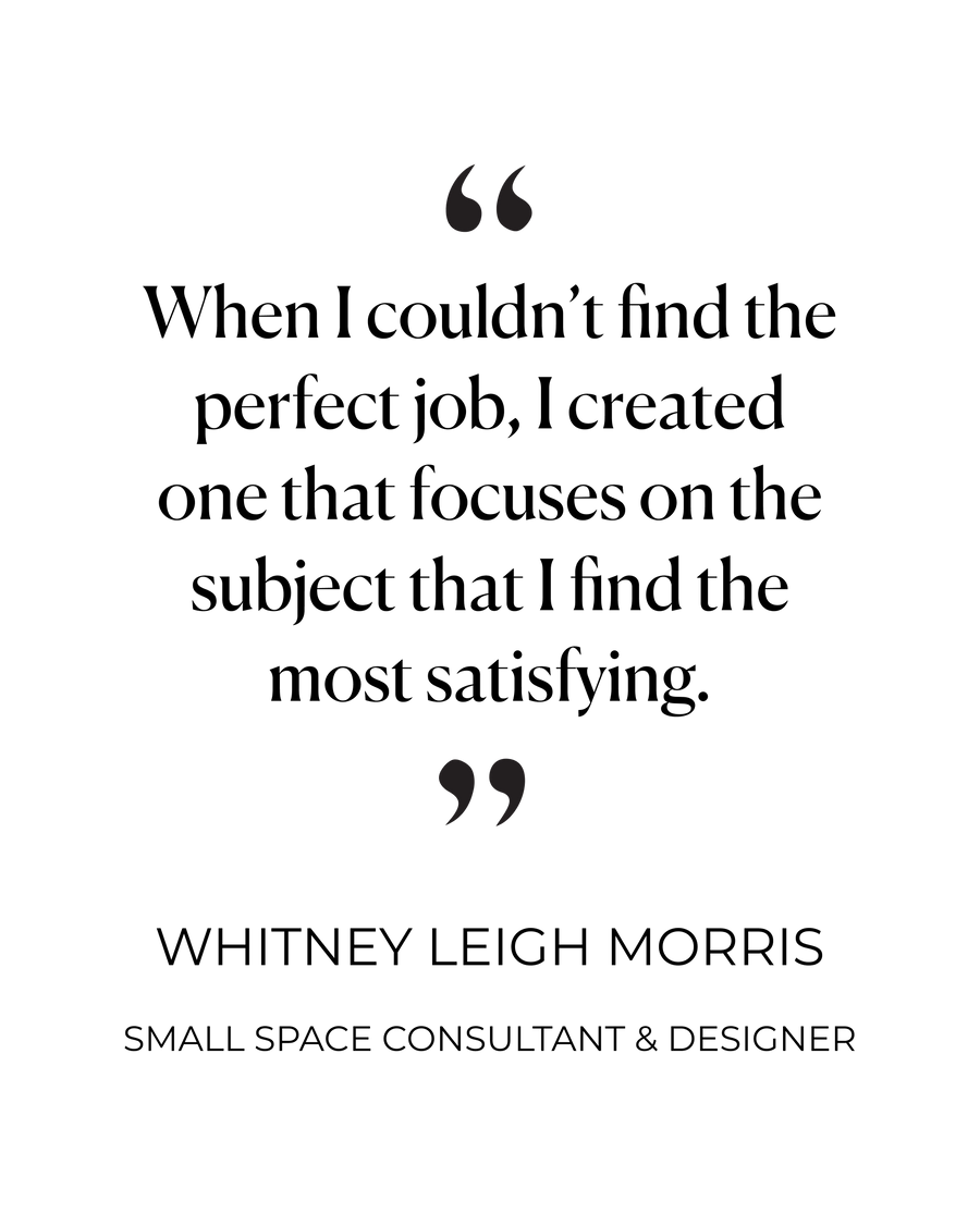 WHITNEY: I’m interested in so many creative fields — from photography and editing, to writing, to designing — that I wanted a profession that allowed me to explore all those interests daily. When I couldn’t find the perfect job, I created one that focuses on the subject that I find the most satisfying: small space living.