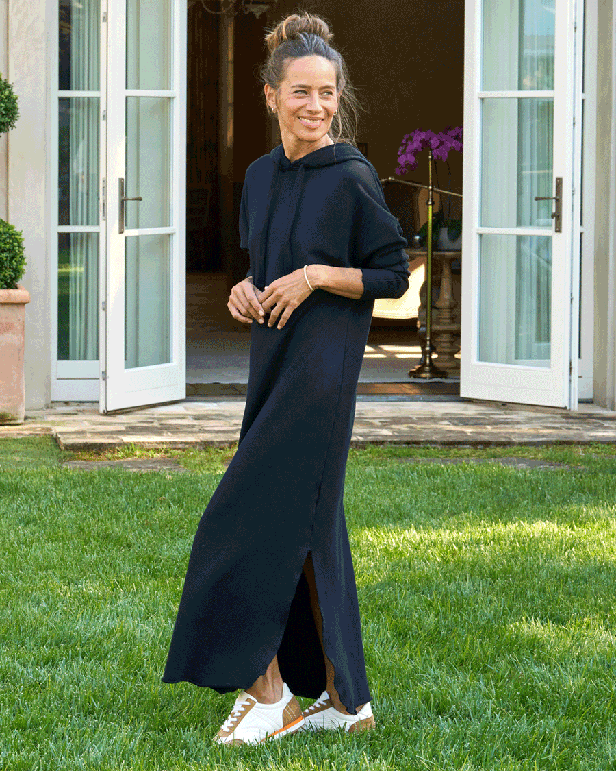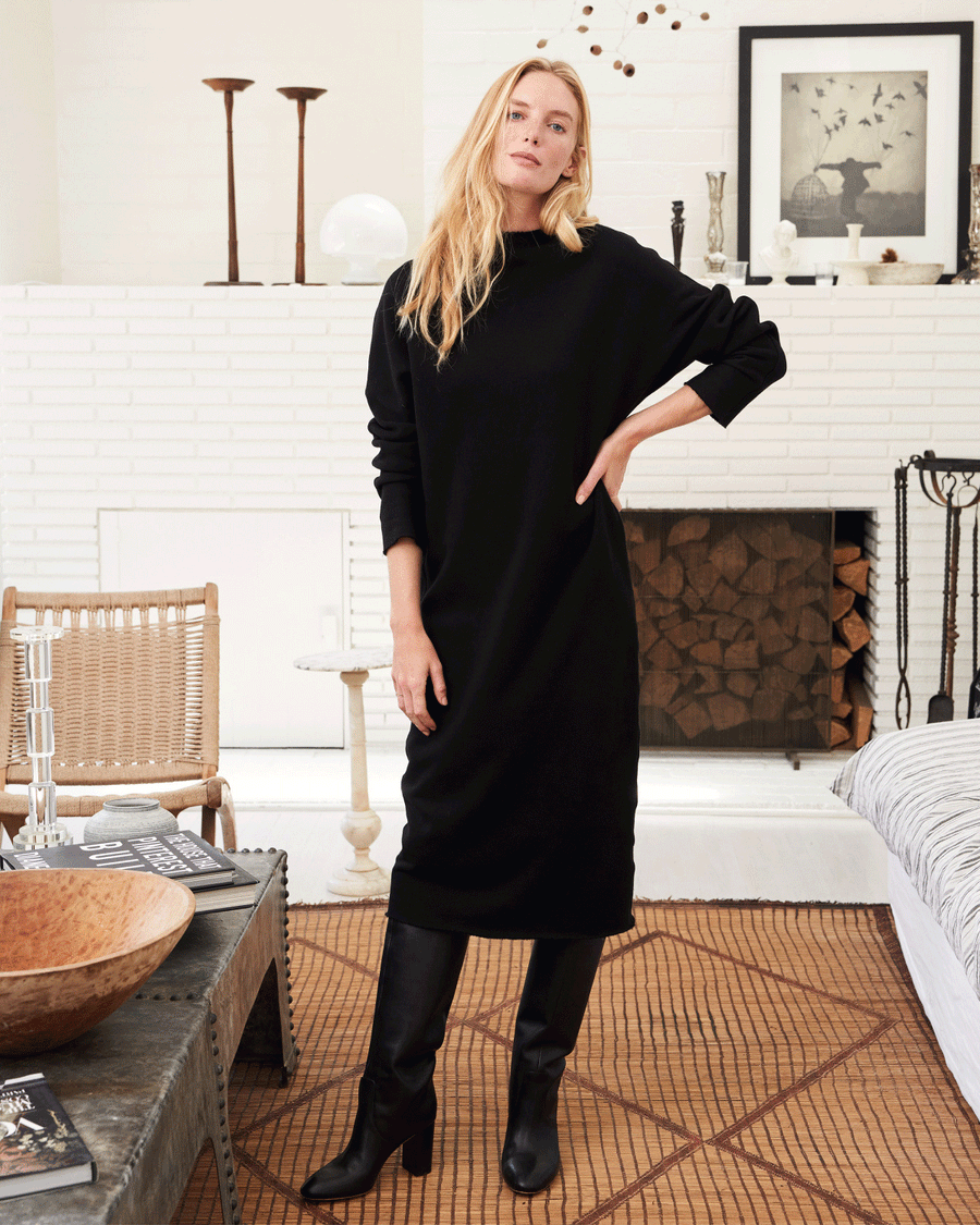 "I’ve always loved sweatshirt dresses but this one elevates that concept. Perfect combination of comfort & style."