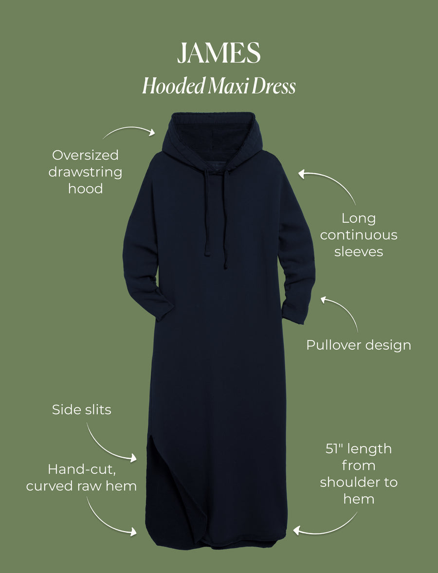 Consider James the effortlessly cool dress version of our best-selling Kane Capelet Hoodie.