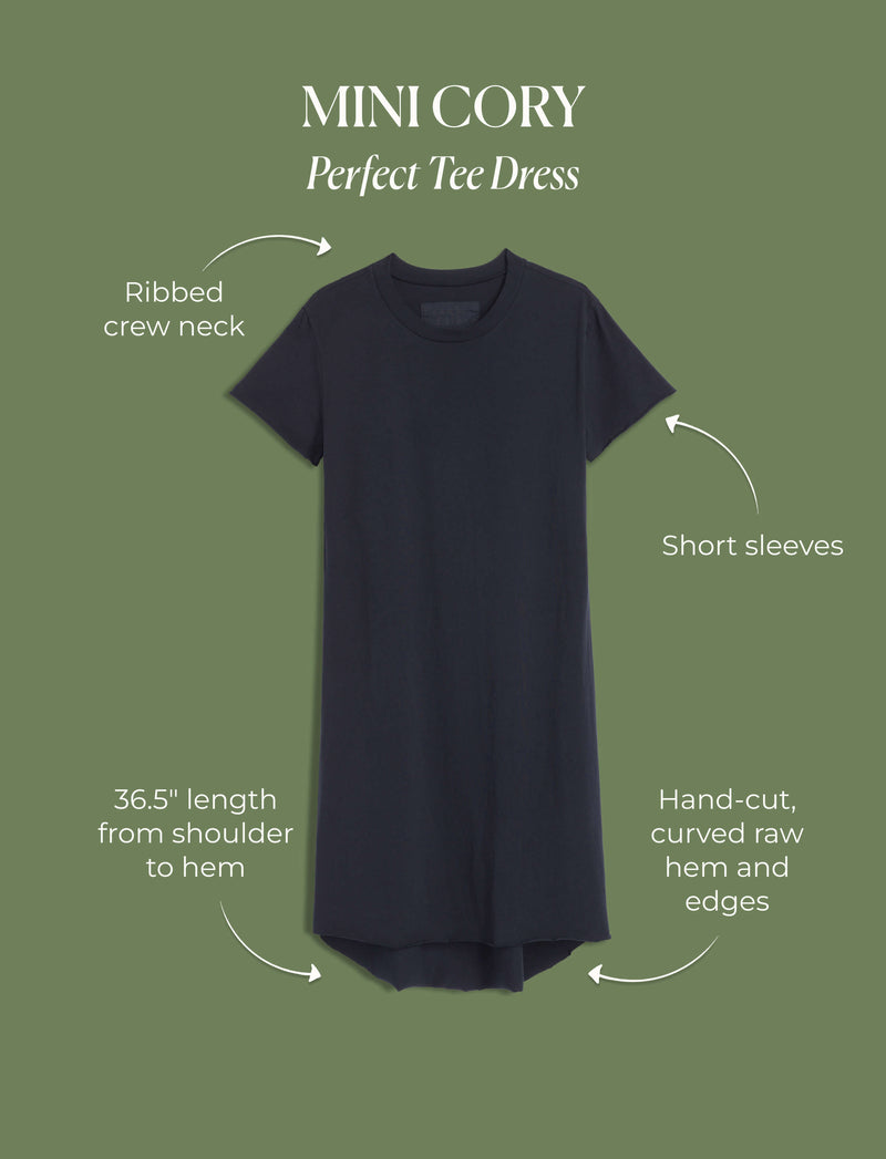 Just like her older, longer sibling Cory, the Mini Cory is a relaxed fit dress that’s just the right amount of boxy and drapes loosely across the body.