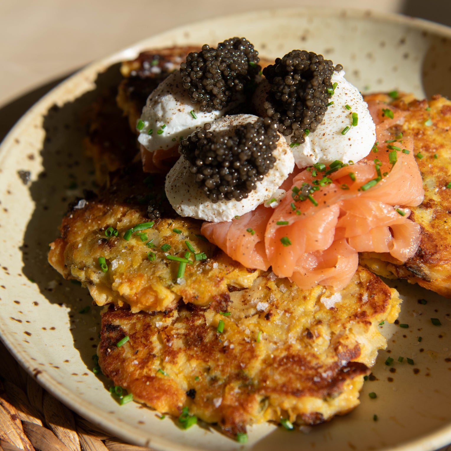 - Add big dollops of ROE Caviar, the more the merrier, and a sprinkle of finely diced chives to serve