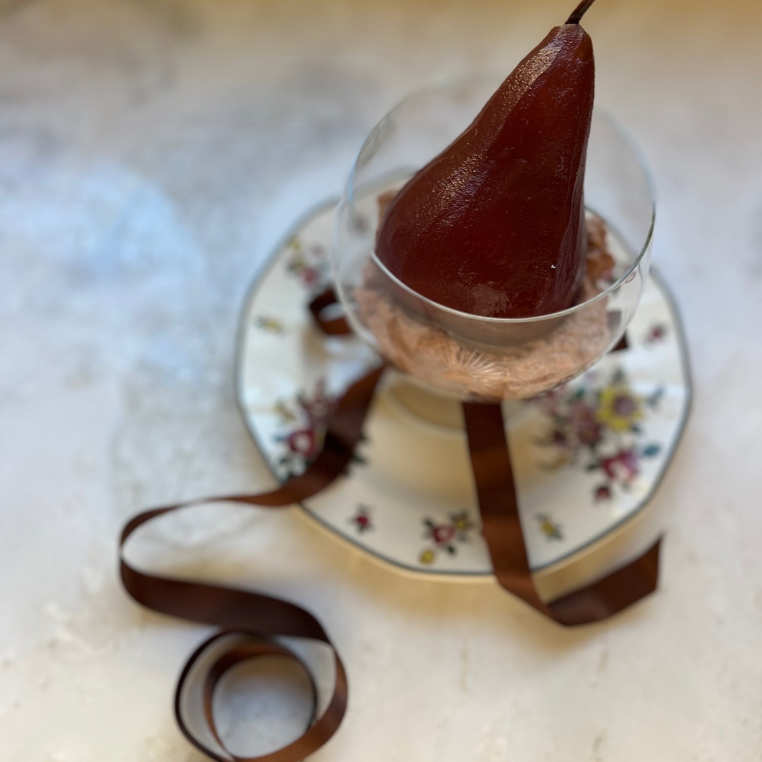FRANCESCA'S RED WINE POACHED PEARS WITH CHOCOLATE CREAM