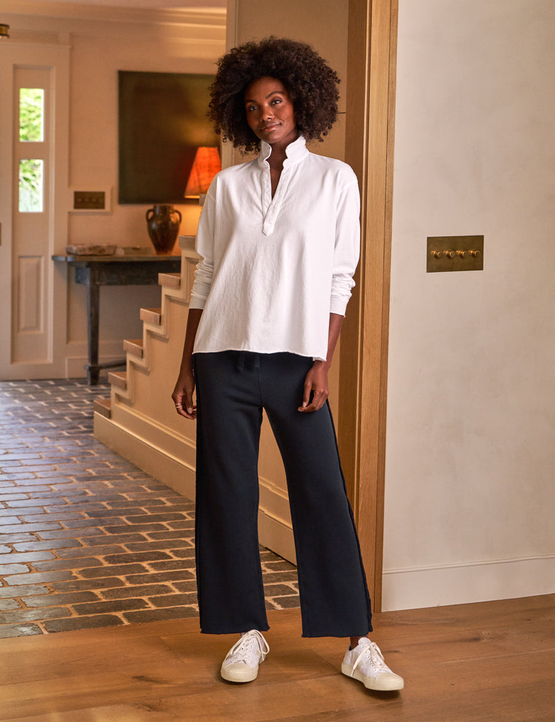 Bella is a longer, richly textured take on our #1 Catherine Sweatpant. Psst, double-back pockets are perfect for your iPhone! Designed for a high-rise with a relaxed fit and long wide-leg.
