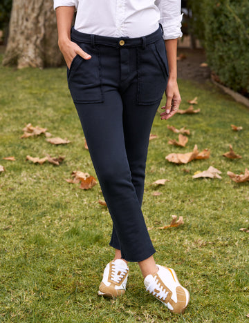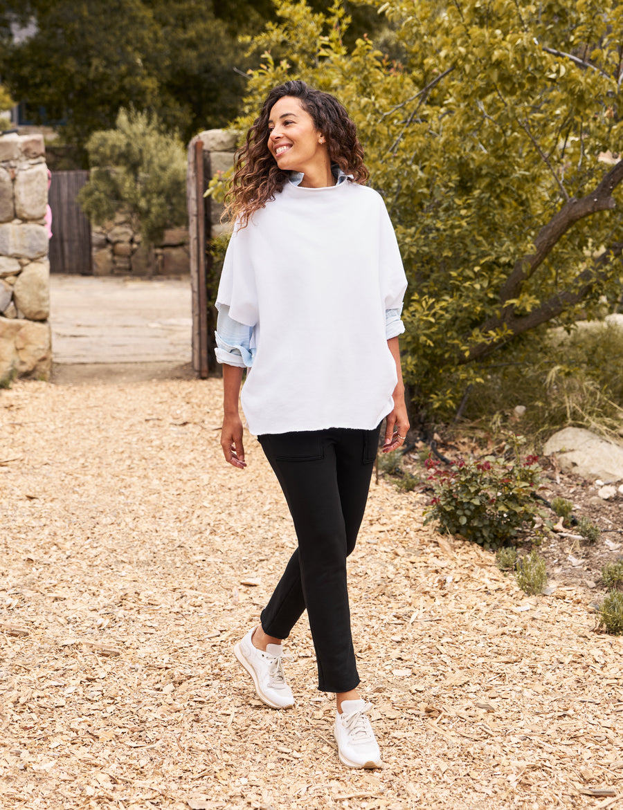 Blackrock in Triple Fleece looks like a chic trouser…but is actually a sweatpant! and ankle length. Designed for a relaxed fit with a straight leg.