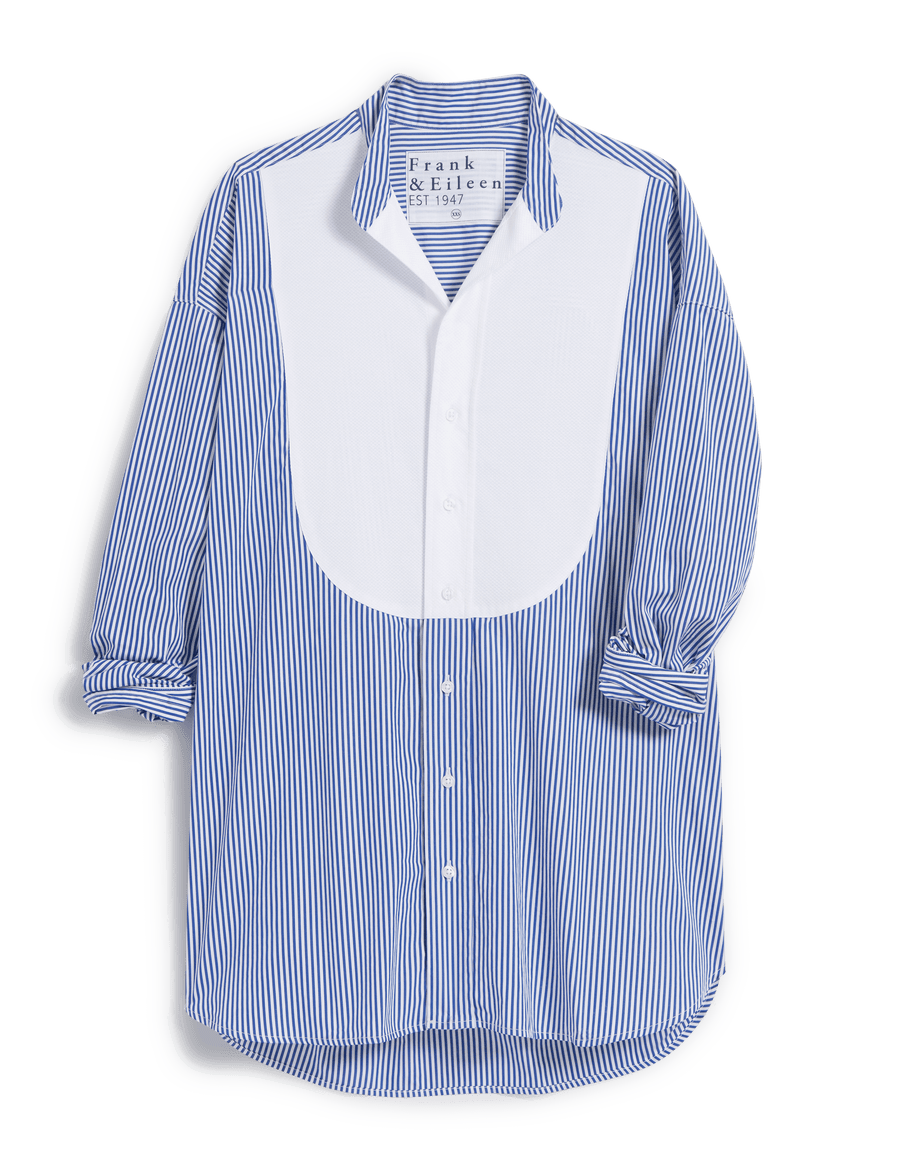 Victoria, our first-ever tuxedo shirt elevates any outfit with a hint of Audrey Hepburn-inspired flair. Designed for an oversized fit.