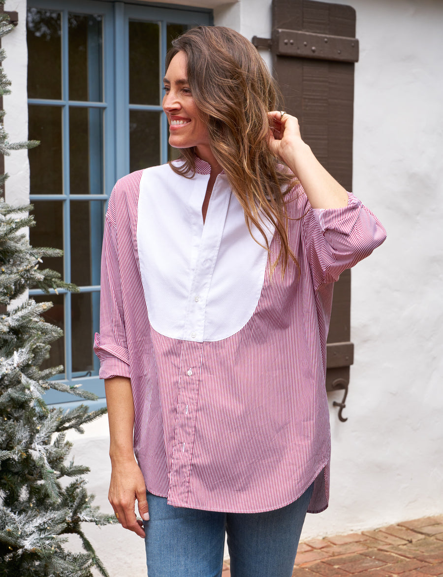 Victoria, our first-ever tuxedo shirt elevates any outfit with a hint of Audrey Hepburn-inspired flair. Designed for an oversized fit.
