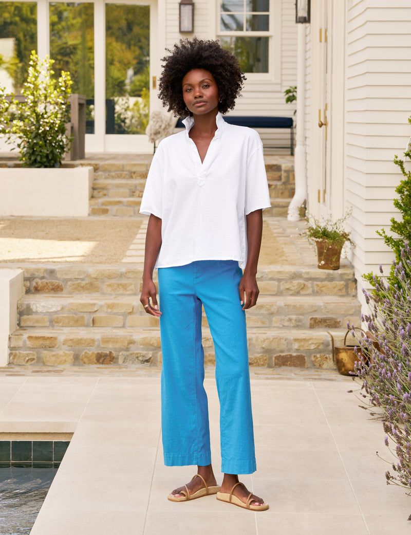 Wexford, the wear-with-anything linen pant. Designed for a relaxed fit with a wide-leg and slightly cropped length.