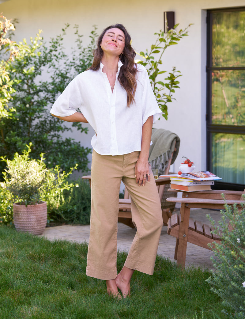 Wexford, the wear-with-anything linen pant. Designed for a relaxed fit with a wide-leg and slightly cropped length.